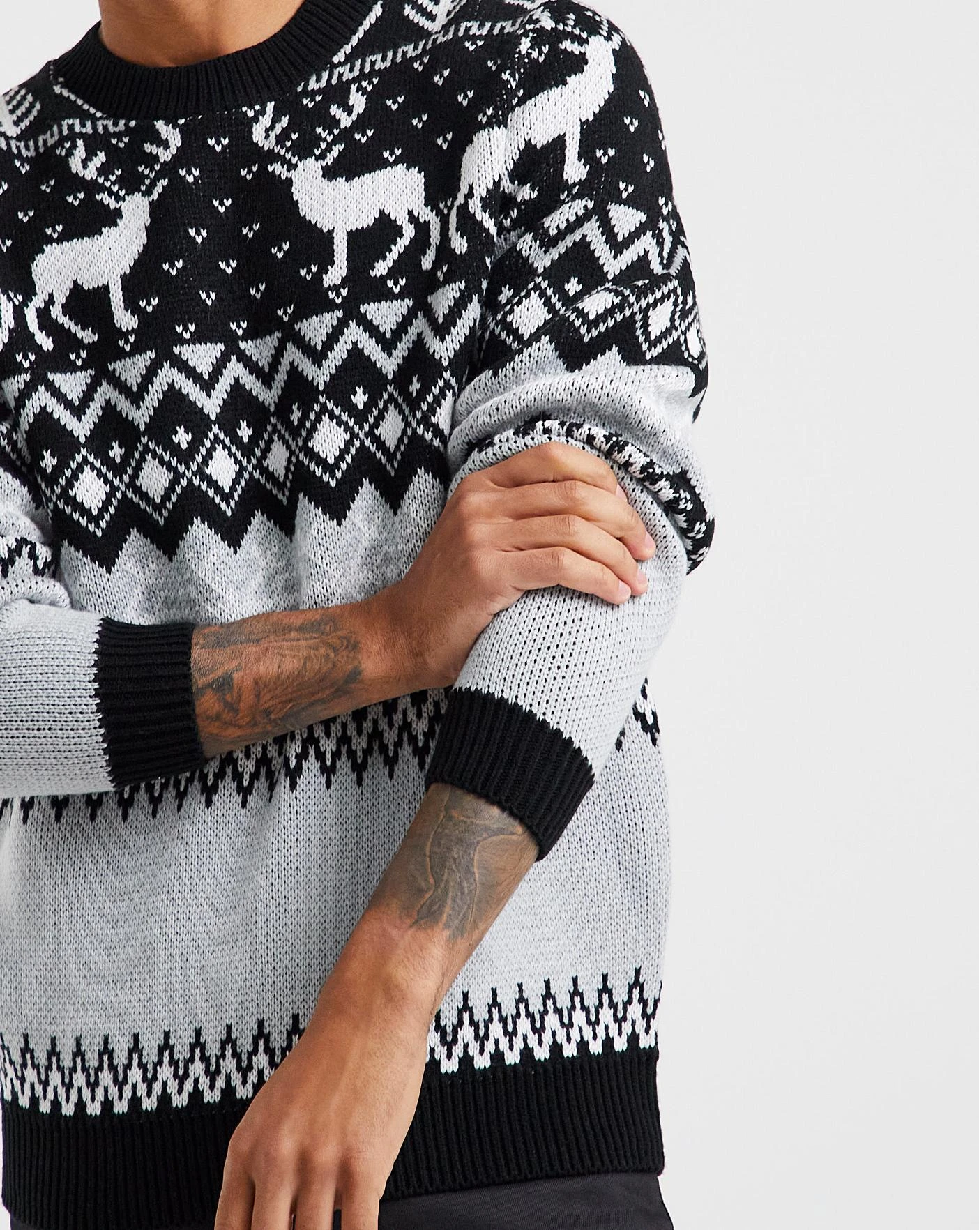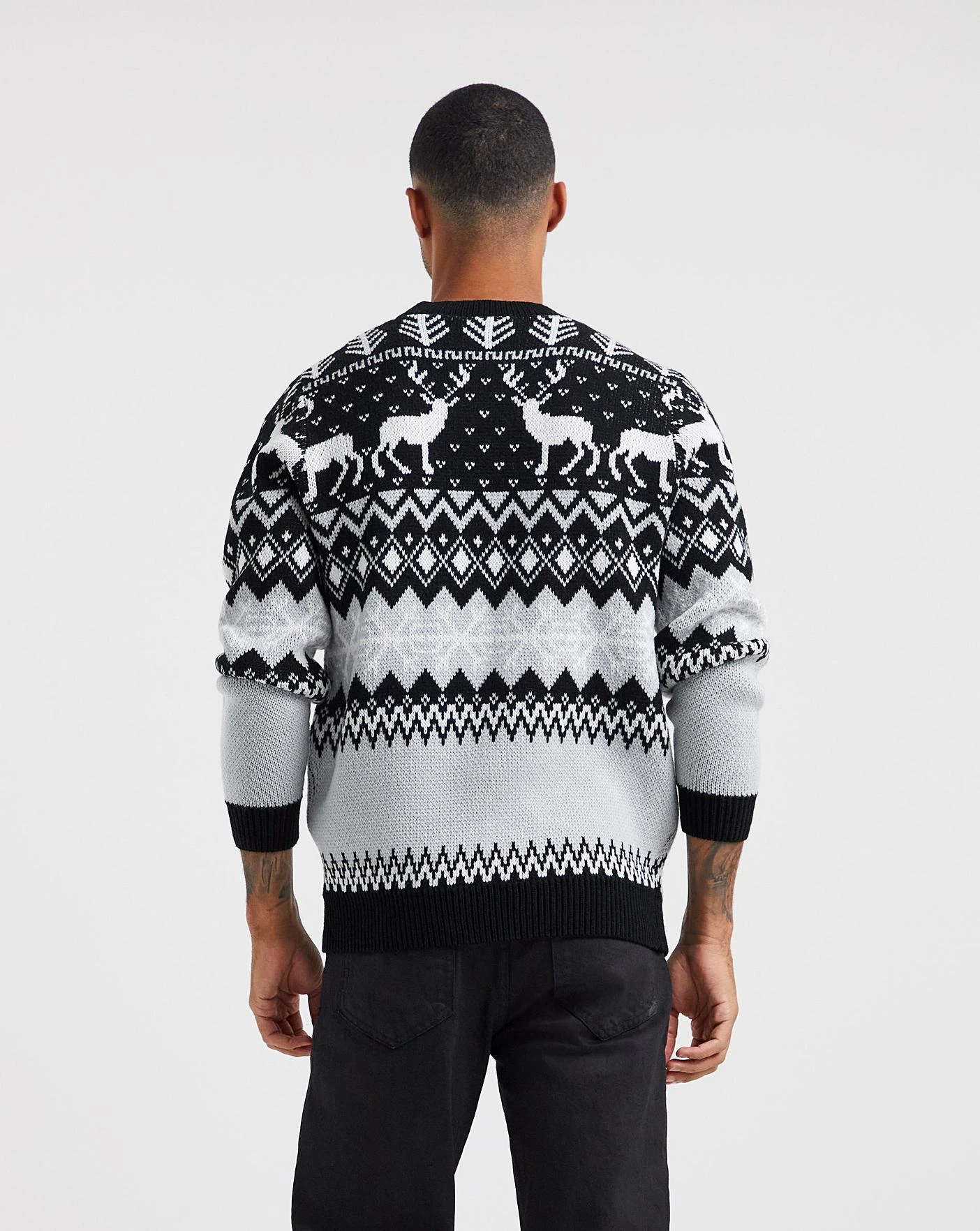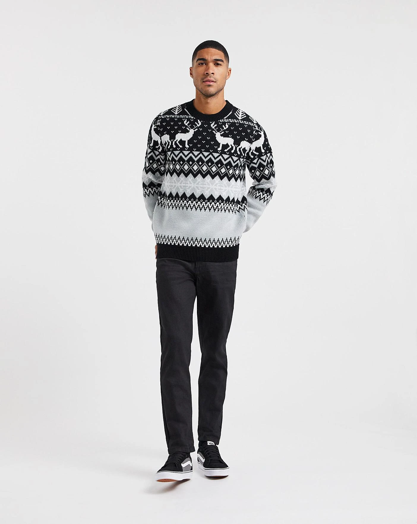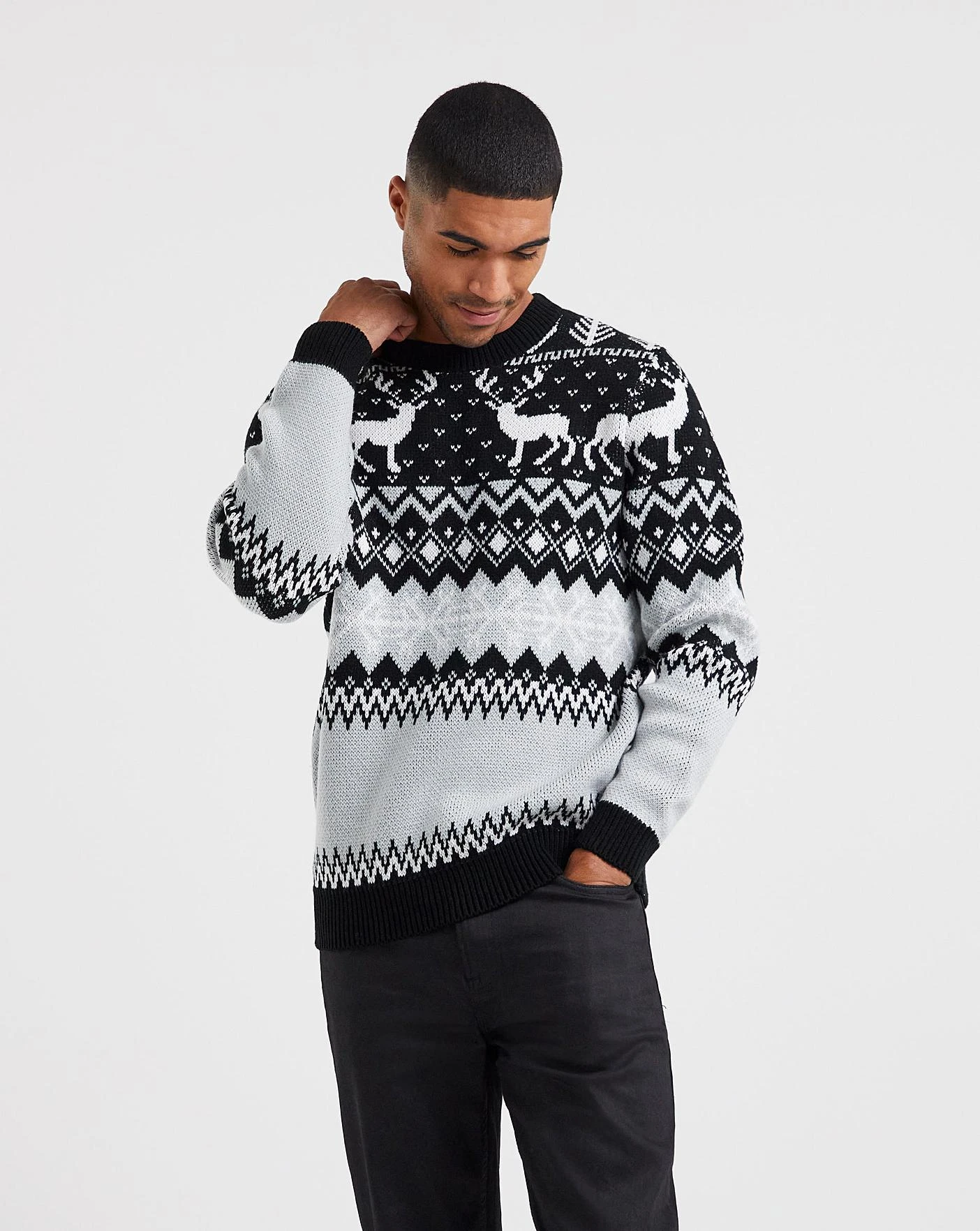 Christmas is here! The black reindeer fairisle printed jumper will boost your winter wardrobe for the festive season. The perfect jumper for the christmas day walk.