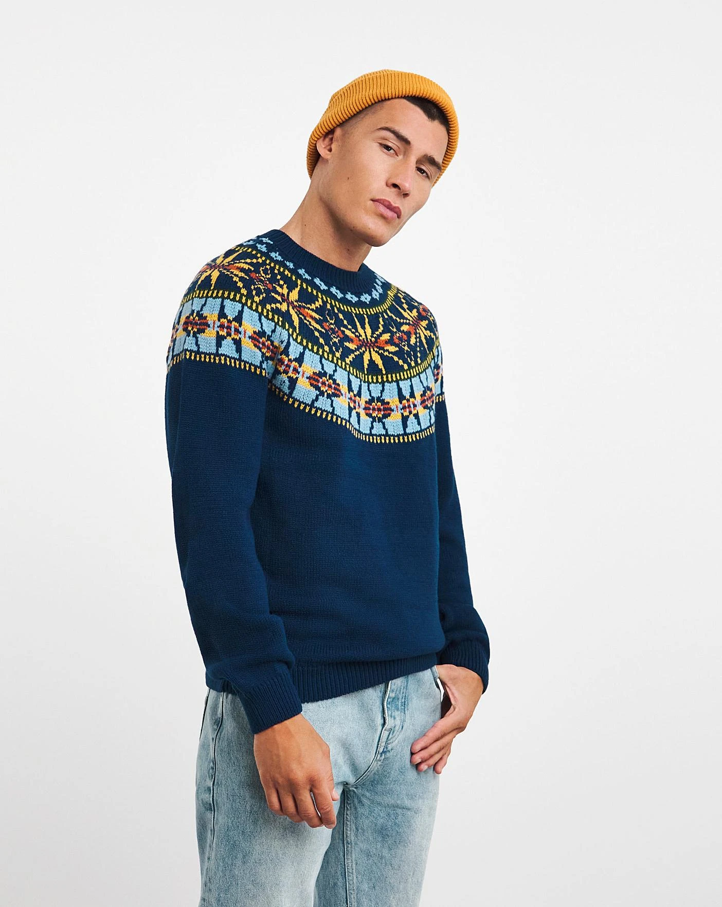 Designed in a timeless crew neck, the Jacamo Fairisle Jumper in Navy is a festive must-have. Celebrate in style this season with this cosy and stylish jumper. Ideal for all festive events, this jumper features a ribbed collar, cuffs and hem. This is the perfect option for your Christmas jumper this season.