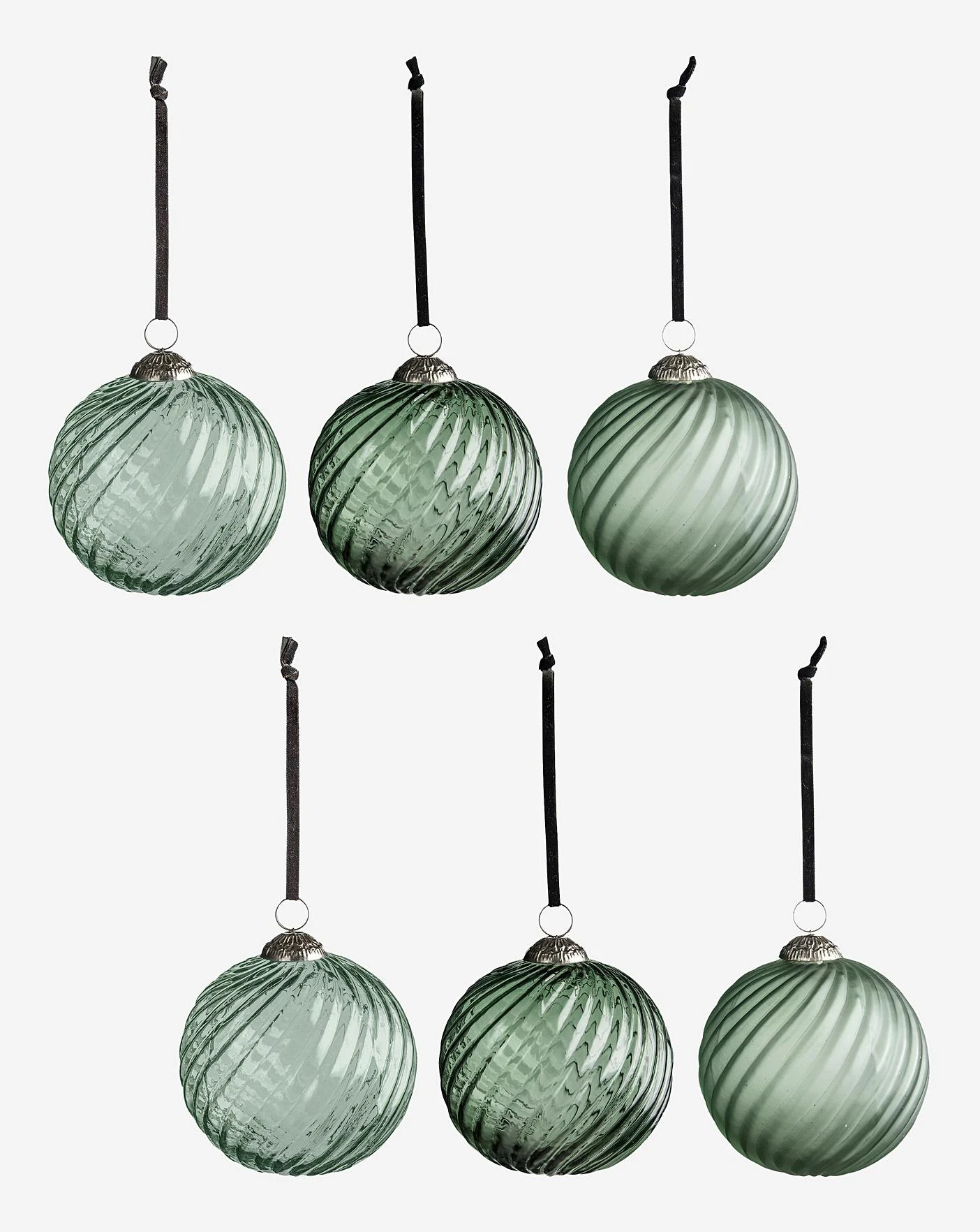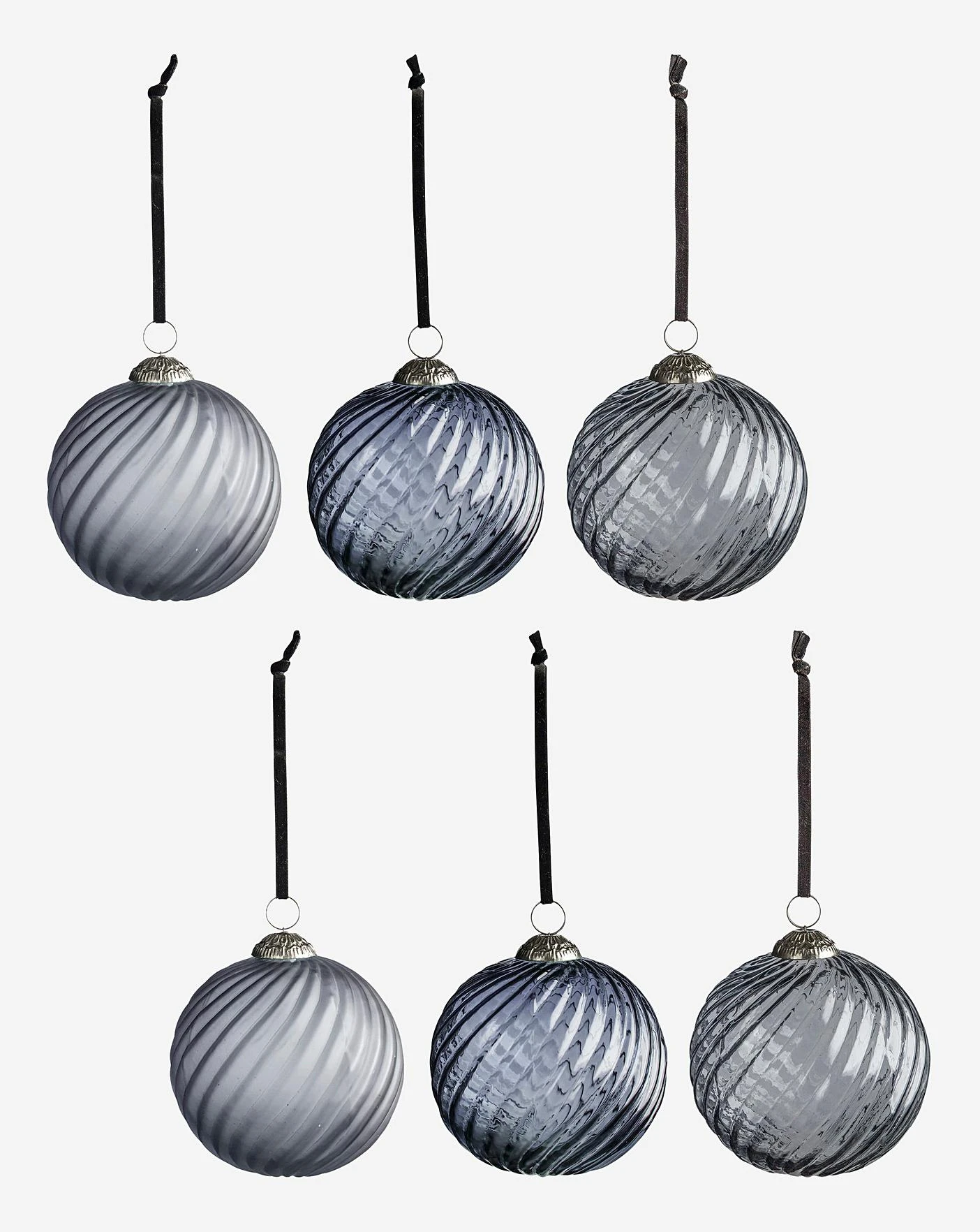 This stunning swirl set includes frosted and clean glass baubles, a perfect touch to your Christmas decor. Available in Spruce and Ice Blue.
