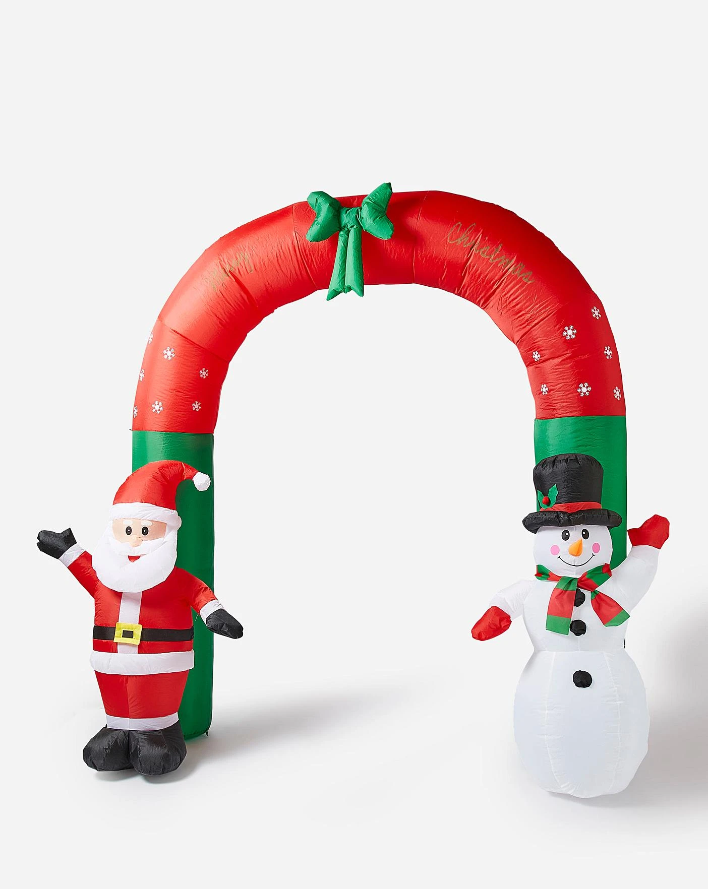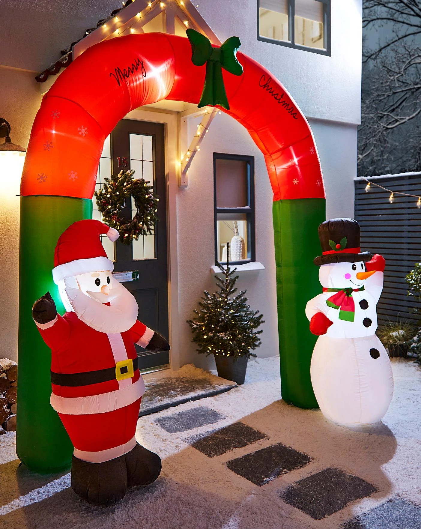 This Novelty Inflatable Arch with Santa and Snowman will bring festive cheer to any outdoor space and with integrated LED lights this will provide internal lit glow effect in the dark.