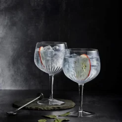 Mixology glassware from Luigi Bormioli features a contemporary cut glass design, finished with an embossed pattern. Made in Italy with SON.hyx high-tech blown lead-free crystal glass for strength, clarity and brilliance, these four gin balloon glasses are dishwasher safe and keep their sparkle. They’re made with Titanium-reinforced stems to increase resistance to breakages. The stem helps preserve the chilled temperature of your drink when the glass is held in the hand. The wide bowls allow for the aromatic blending and infusing of gin, ice, mixers and citrus garnishes. Gift boxed.