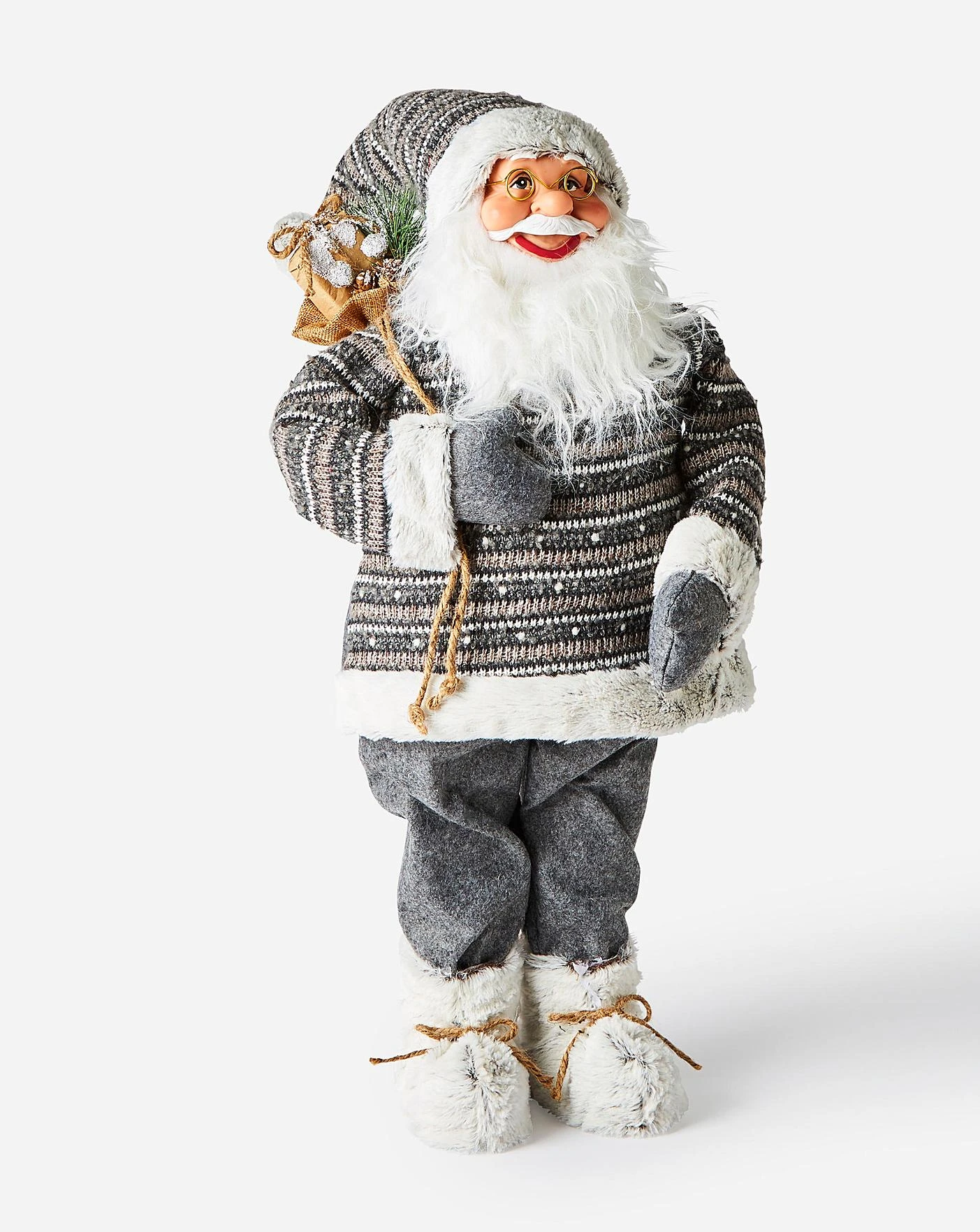 89cm Grey standing Nordic santa with grey hat and sack. This is for decoration purposes only and not a toy.