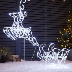 This charming Outdoor Reindeer and Sleigh will add a beautiful seasonal touch to your outdoor Christmas display. Shop the full range of Outdoor Christmas Lights.