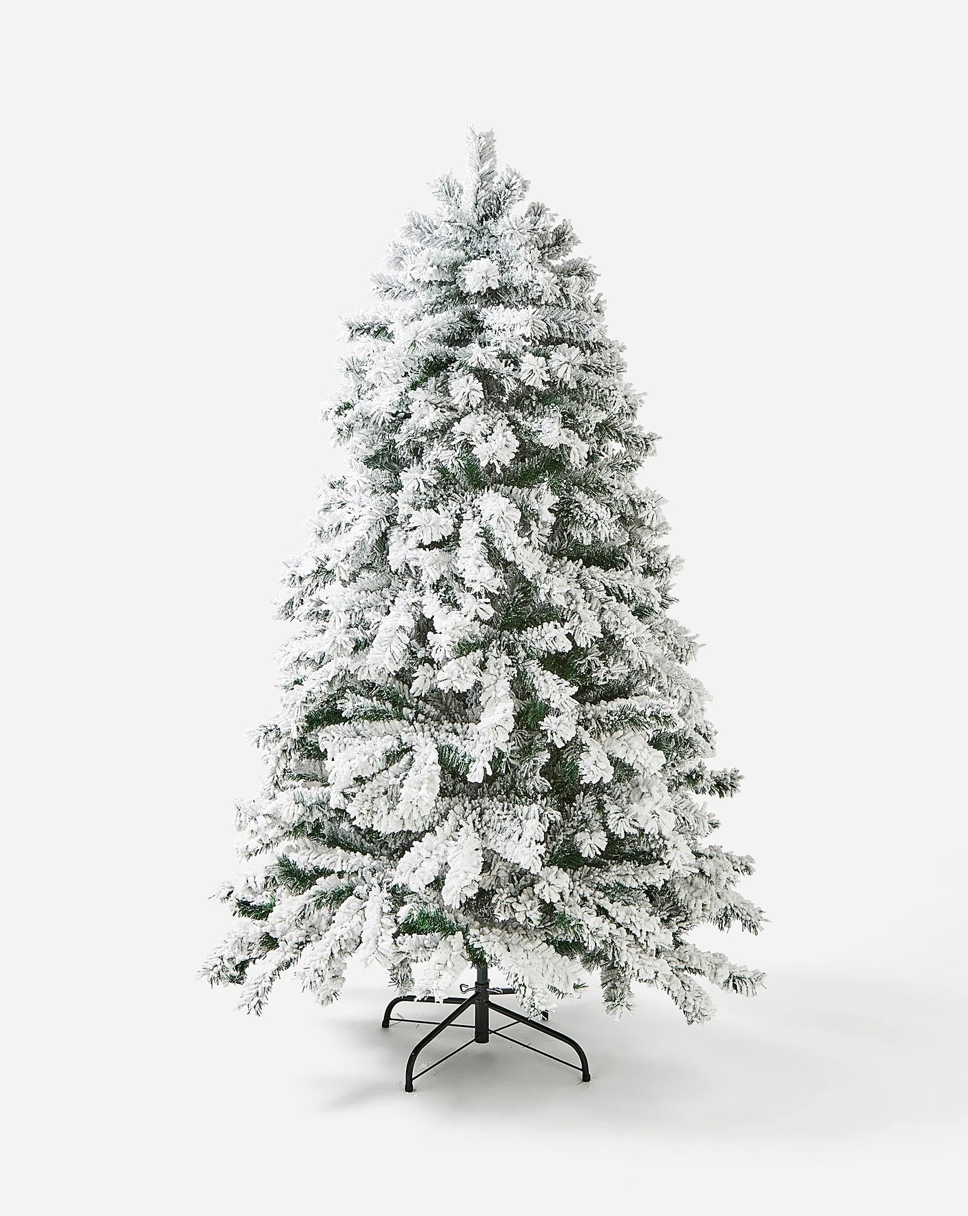 Aspen pre lit flocked tree is available in 6ft, 7ft and 8ft sizes and comes fully lit with warm white . This tree is made from PVC and steel. All branches are fully hinged and the tree comes on with a metal stand. Indoor use only and partial self-assembly is required. Ensure protective eyewear is worn when setting up to prevent any loose flocking from getting into eyes.
