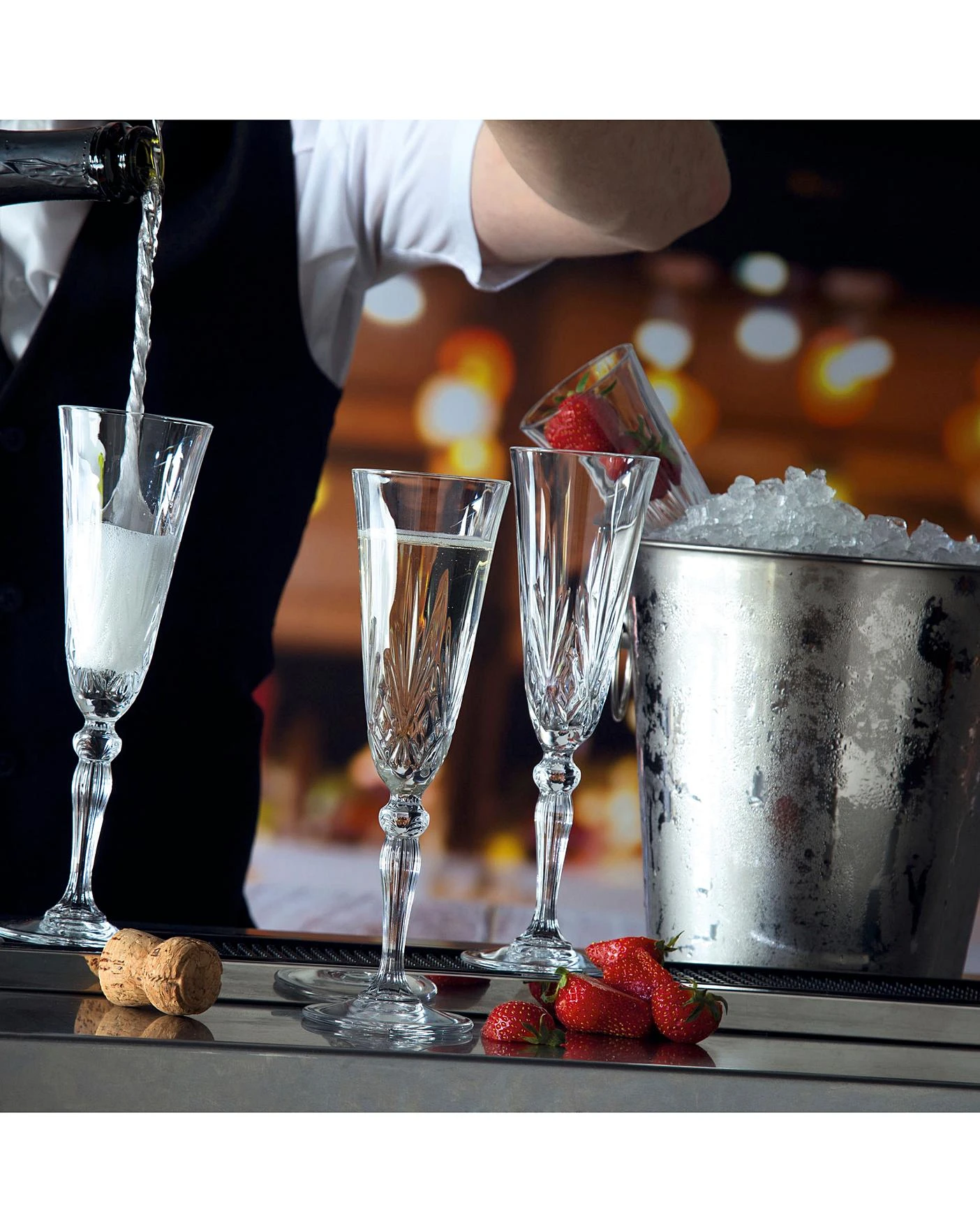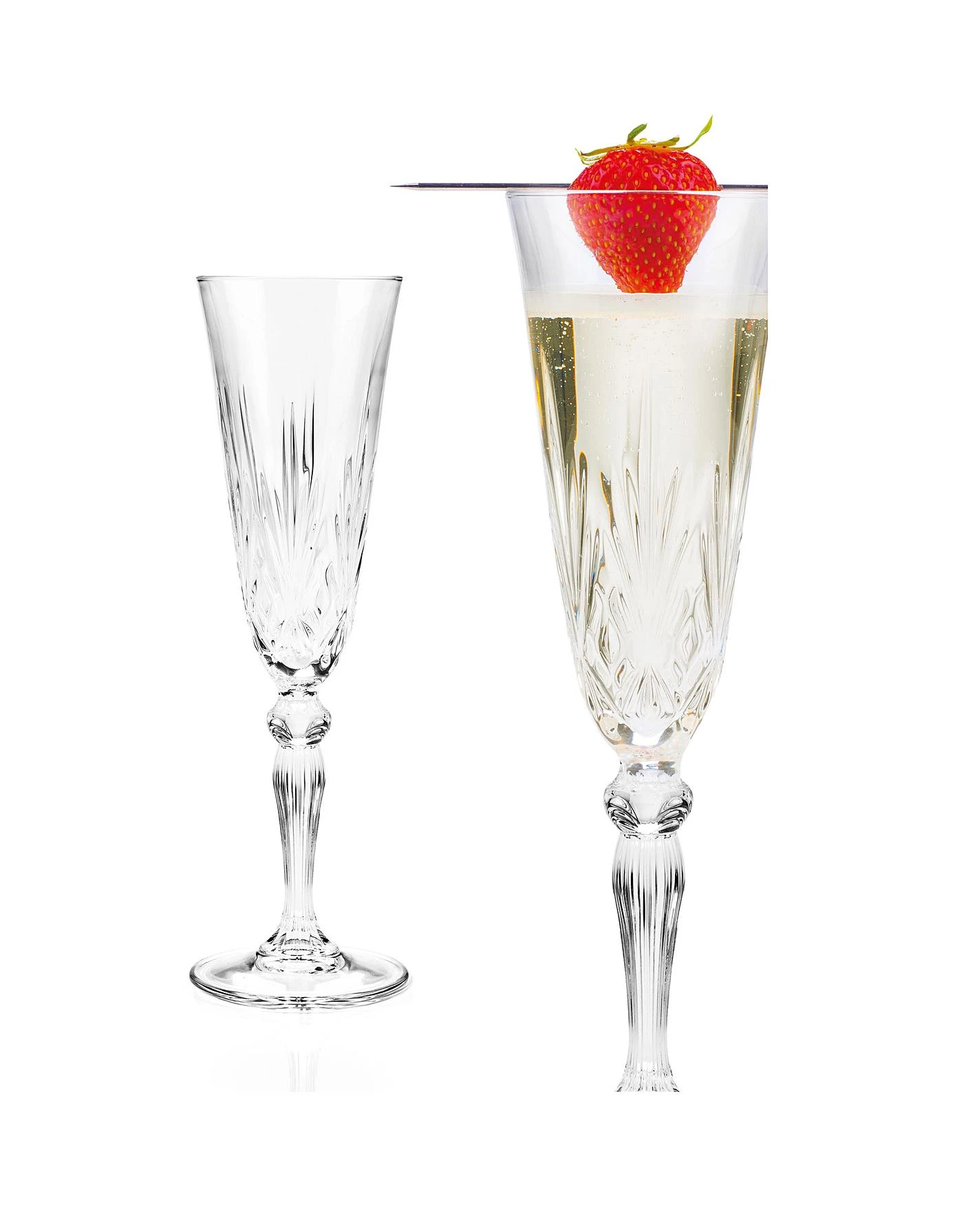 Expertly crafted in the heart of Italy, these RCR Champagne Flutes are the perfect accompaniment to your special celebrations. Finished in an intricate Melodia design, these flutes ooze elegance and sophistication, an ideal gift newlyweds and for new home owners. Developed in highest quality Luxion crystal, these glasses reflect light to create a dazzling gleaming effect. RCR Luxion crystal is proven to be dishwasher safe, ensuring a quick and simple clean.