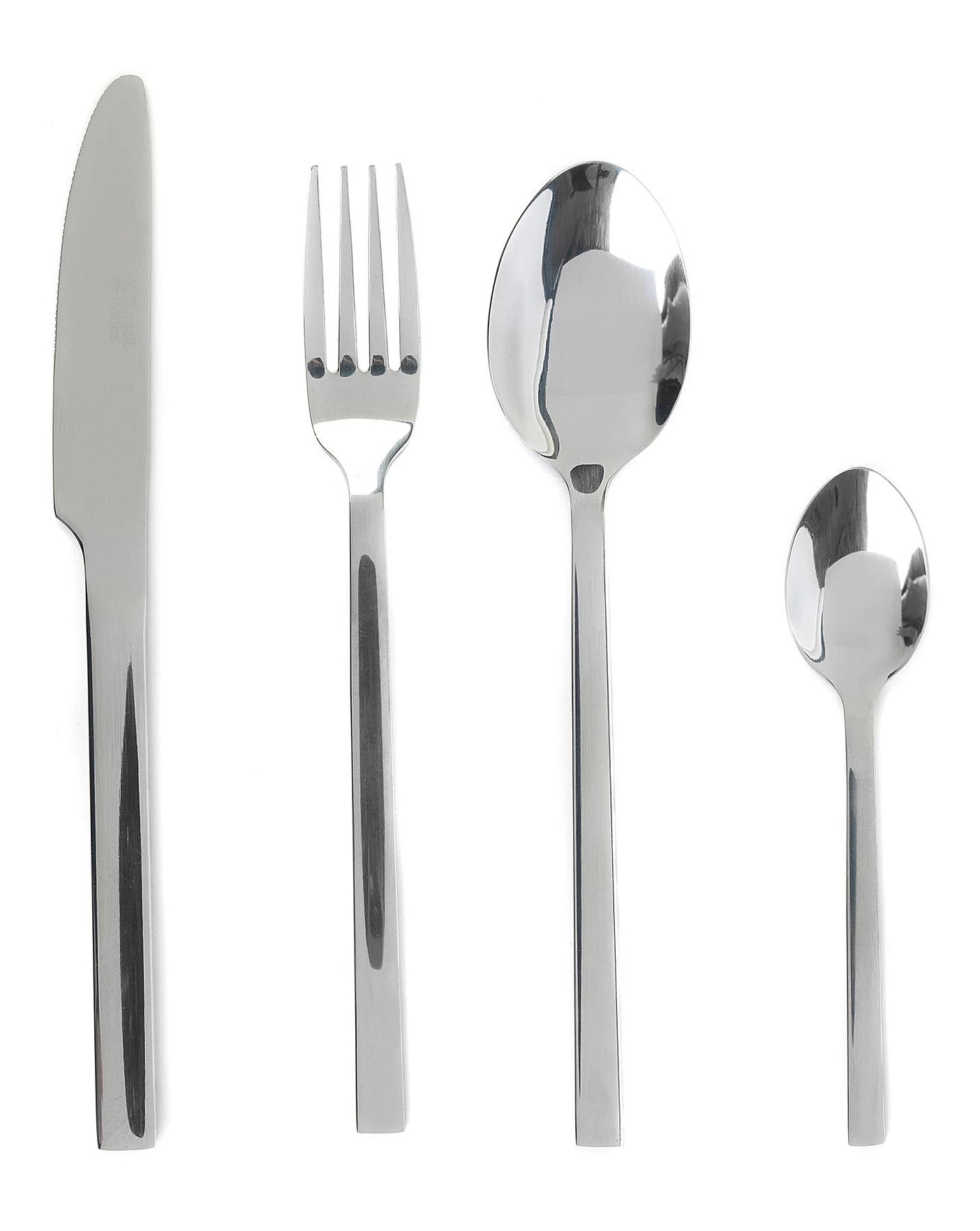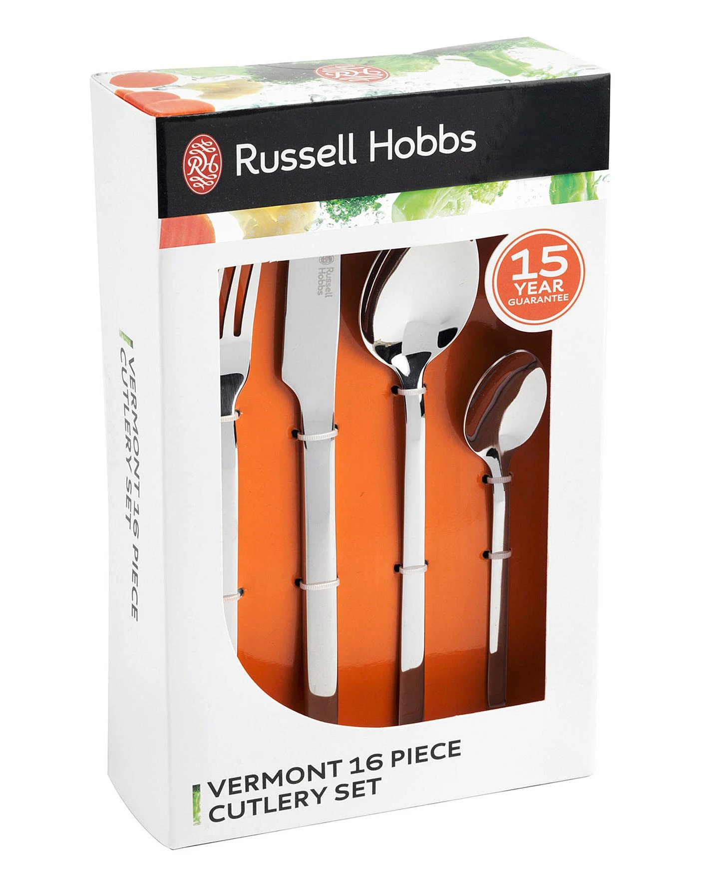 Make your table more appealing with this luxurious Russell Hobbs Vermont cutlery. Ideal as a starter set or for refreshing your dinnerware, this 16 piece set contains 4 knives, 4 forks, 4 tablespoons and 4 teaspoons made from mirror polished stainless steel with a delicate tapering handle design, which is guaranteed to impress your guests. Practical and durable, this set is perfect for everyday use, while the gorgeous, classic style is sure to give your existing tableware a graceful new look. Finely balanced with a pleasant weight, this cutlery is delightful to hold and use, fitting nicely in the hand with elegant handles. With a timeless look, this beautiful cutlery will match most tableware schemes, and will continue to last as fashions change.