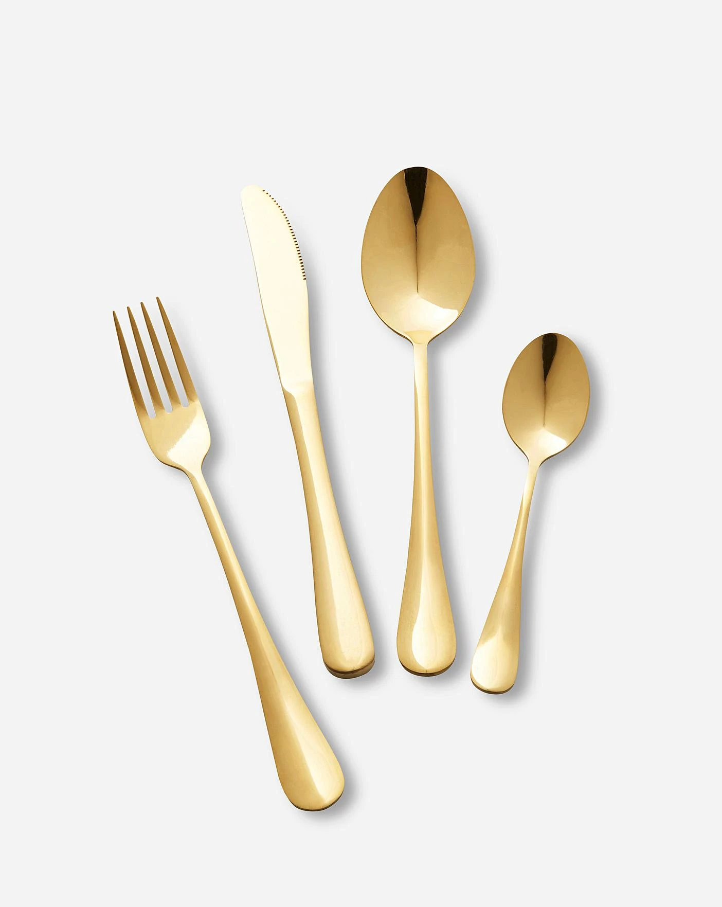 Part of our Glamour collection the gold 16-piece cutlery set has a luxurious look with a high shine finish and features four place settings. It’s sure to leave your dining table looking stylish and chic!