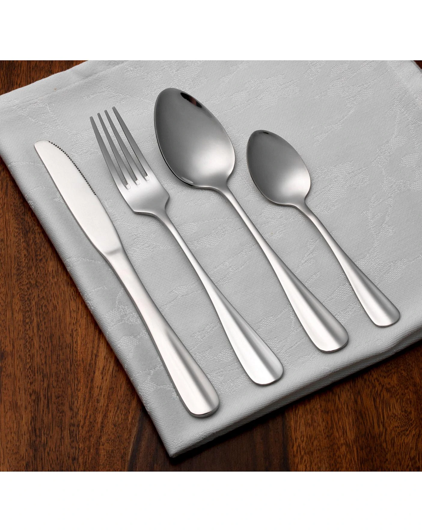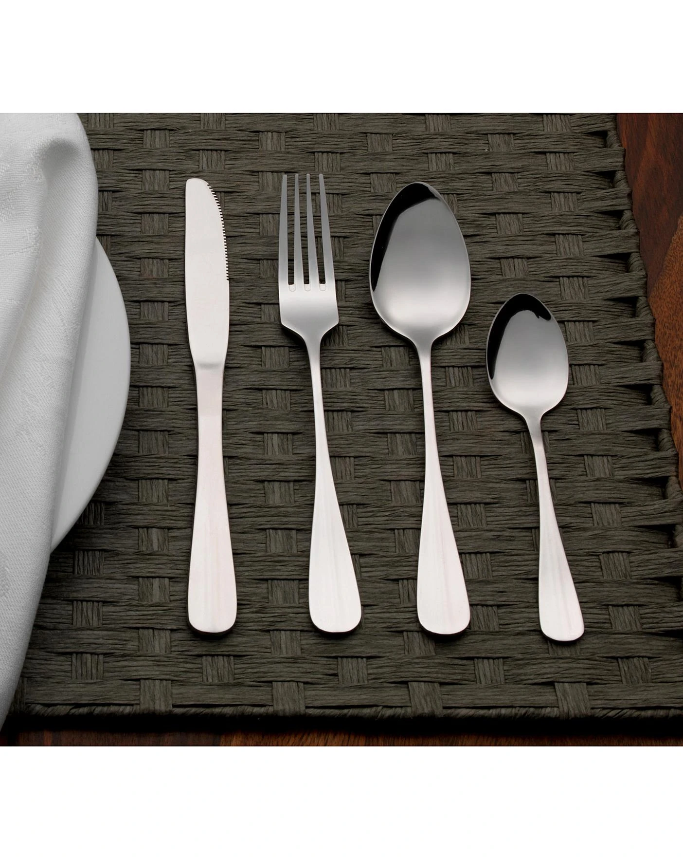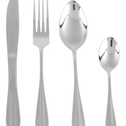 The set contains six 18.5cm forks, six 21cm knives, six 18.5cm tablespoons and six 13cm teaspoons, great for when friends are over.