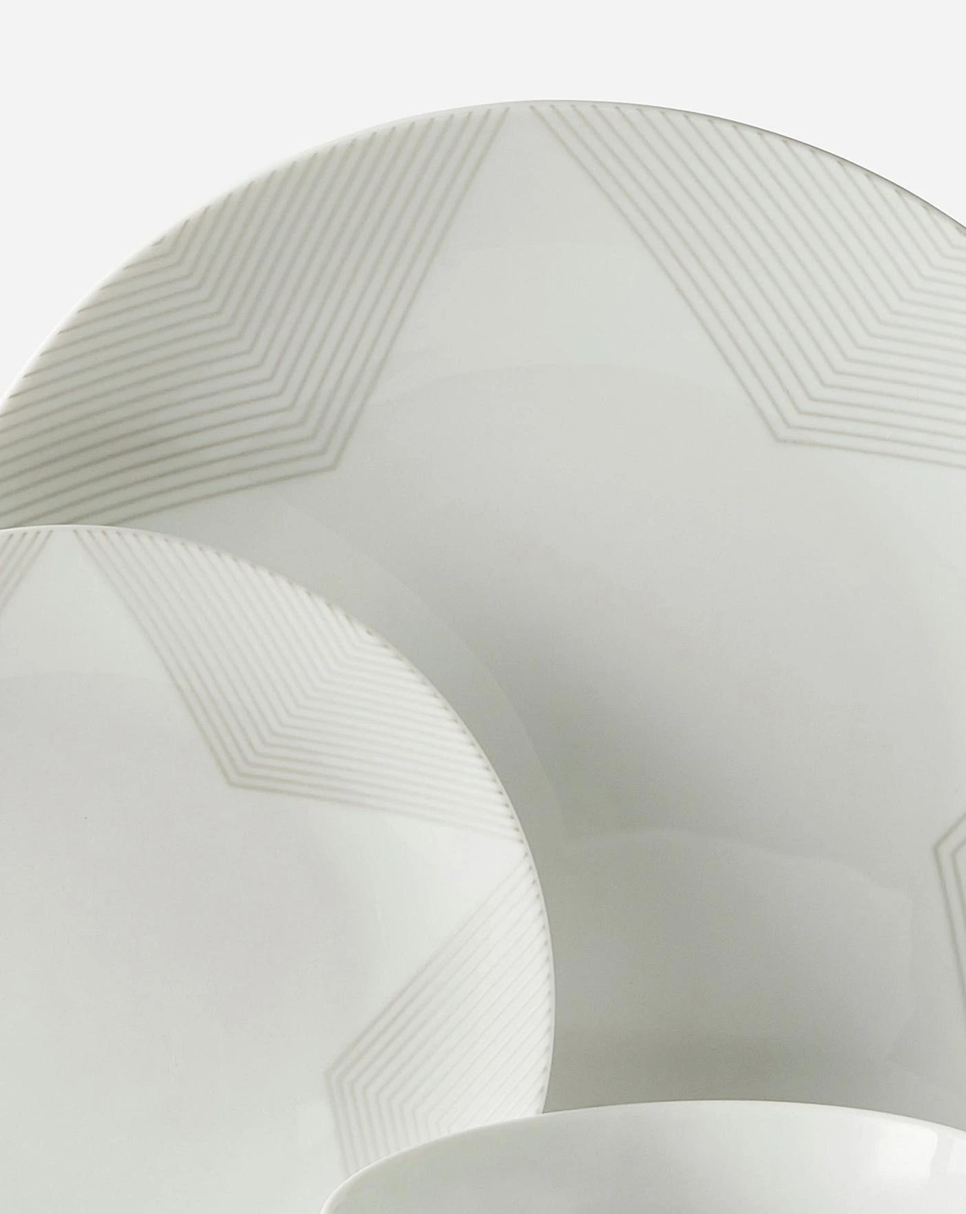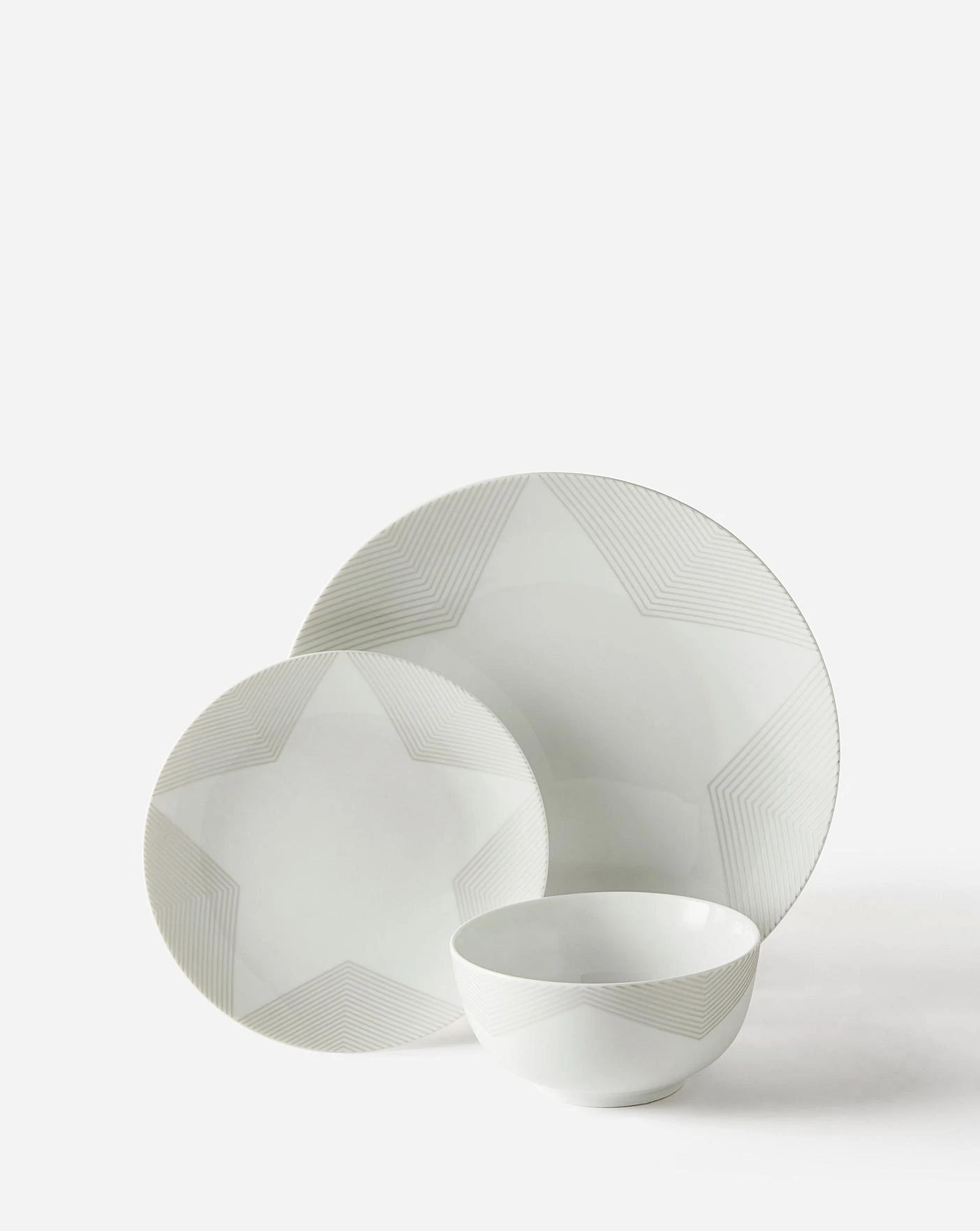 Silver star design dinnerset, including 4 plates, 4 side plates and 4 bowls.