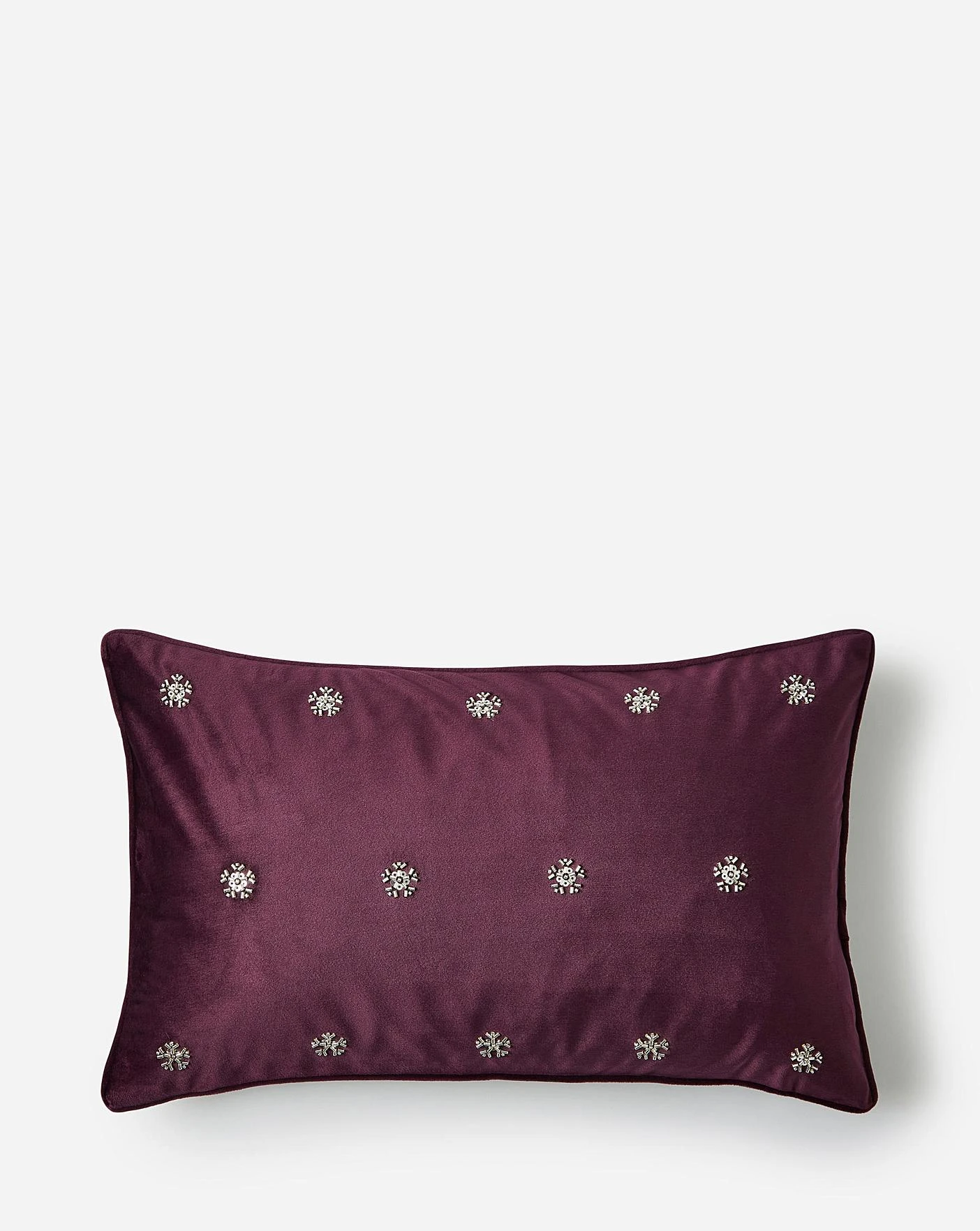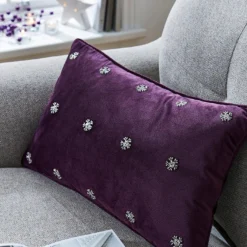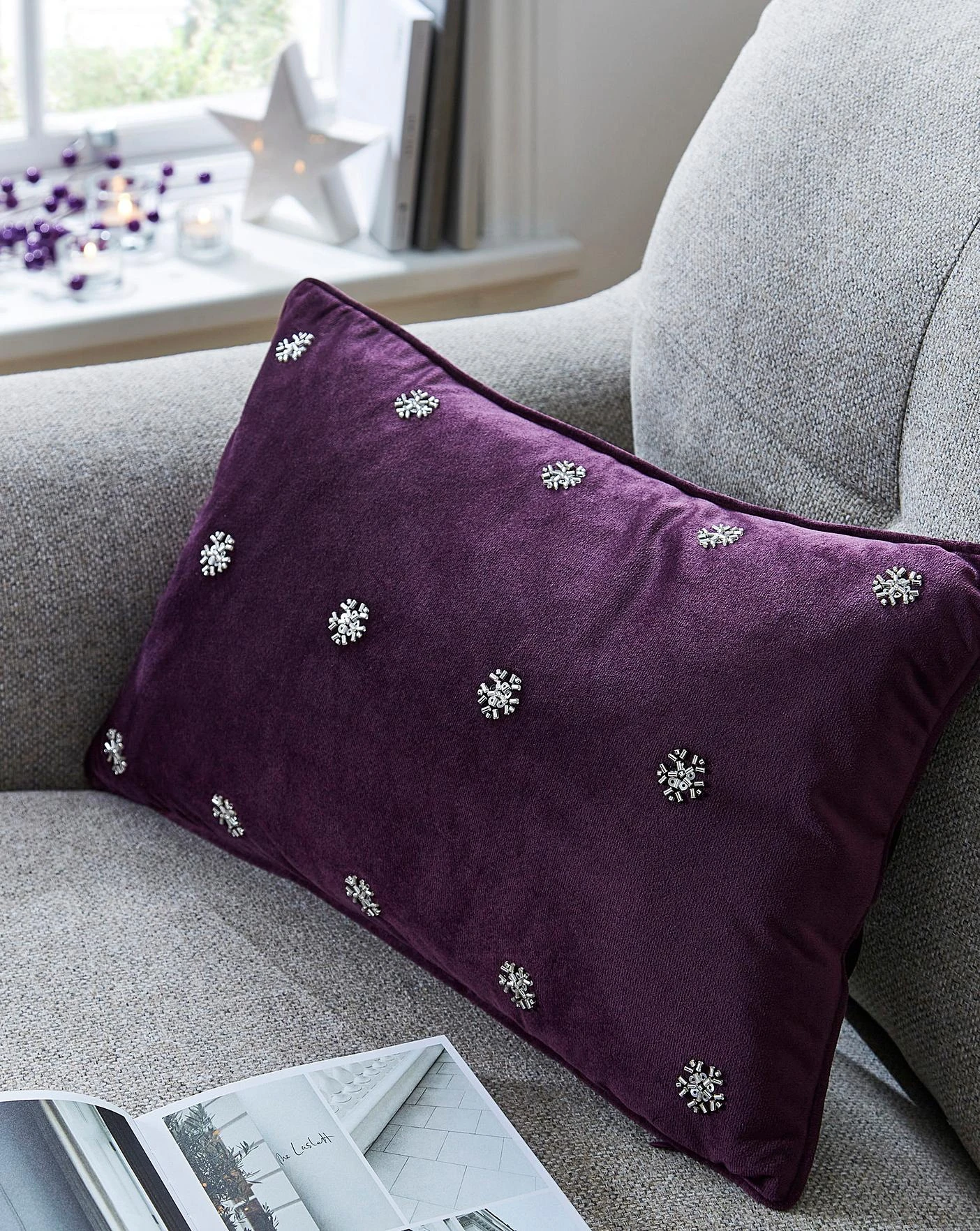 This Plum Beaded Snowflake Cushion will add a touch of festive sparkle to your home this Christmas.