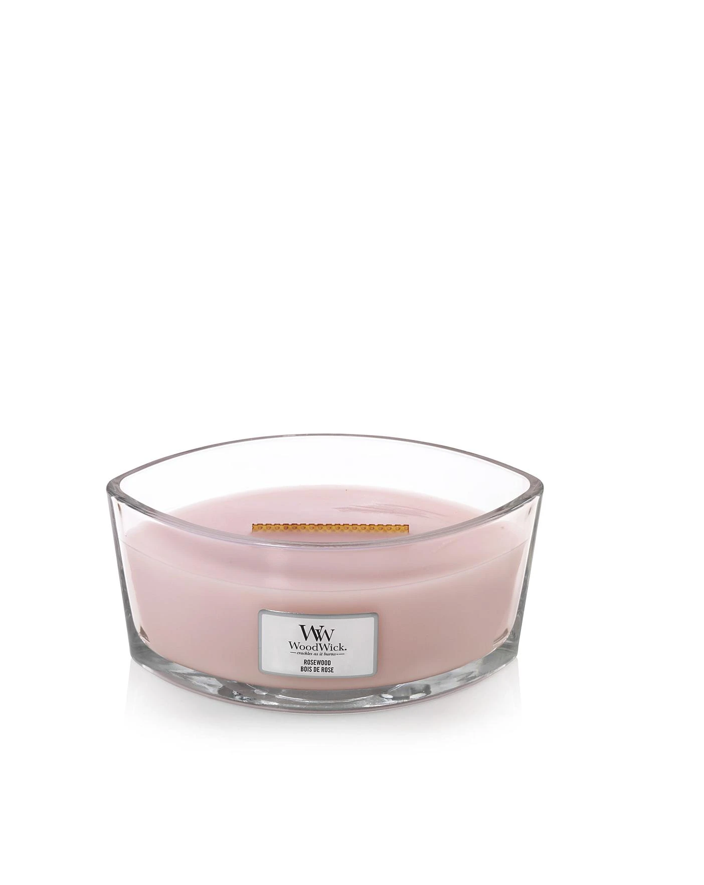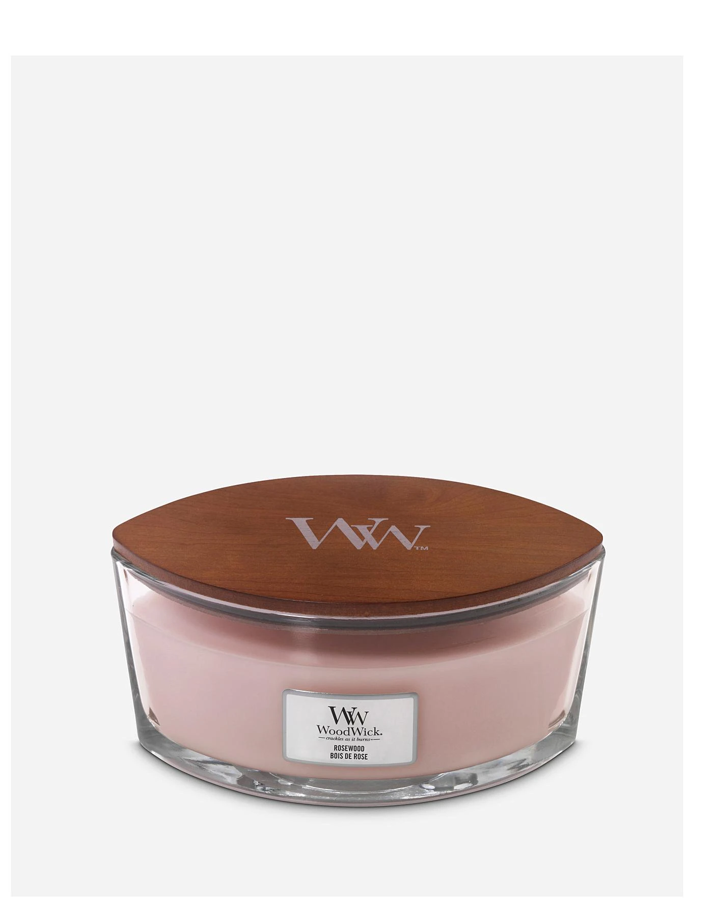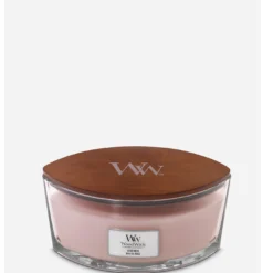 Ellipse Woodwick Candles fill your home with sophisticated scents and a soft crackle from a natural wooden wick that Crackles as it Burns. The distinctive crackle and long, dancing flame of Ellipse WoodWick Candles is created by a patented HEARTHWICK Flame. An indulgence for your senses, enjoy rich fragrance, a crackling wick and a stylish teardrop shaped glass vessel to recreate the refined glow of a fireplace in any room in your home. Premium paraffin and soy waxes are blended with highly concentrated fragrances to produce a beautiful burn with no messy residue. The exclusive, patented wooden wick, Pluswick Innovation, creates the sound of a crackling fire. Wicks are handcrafted for each individual candle and produce a generous wax pool with a fast fragrance release. Ellipse shape creates a wider opening for a fully melted wax pool that produces a more consistent fragrance experience. Includes wood style lid.