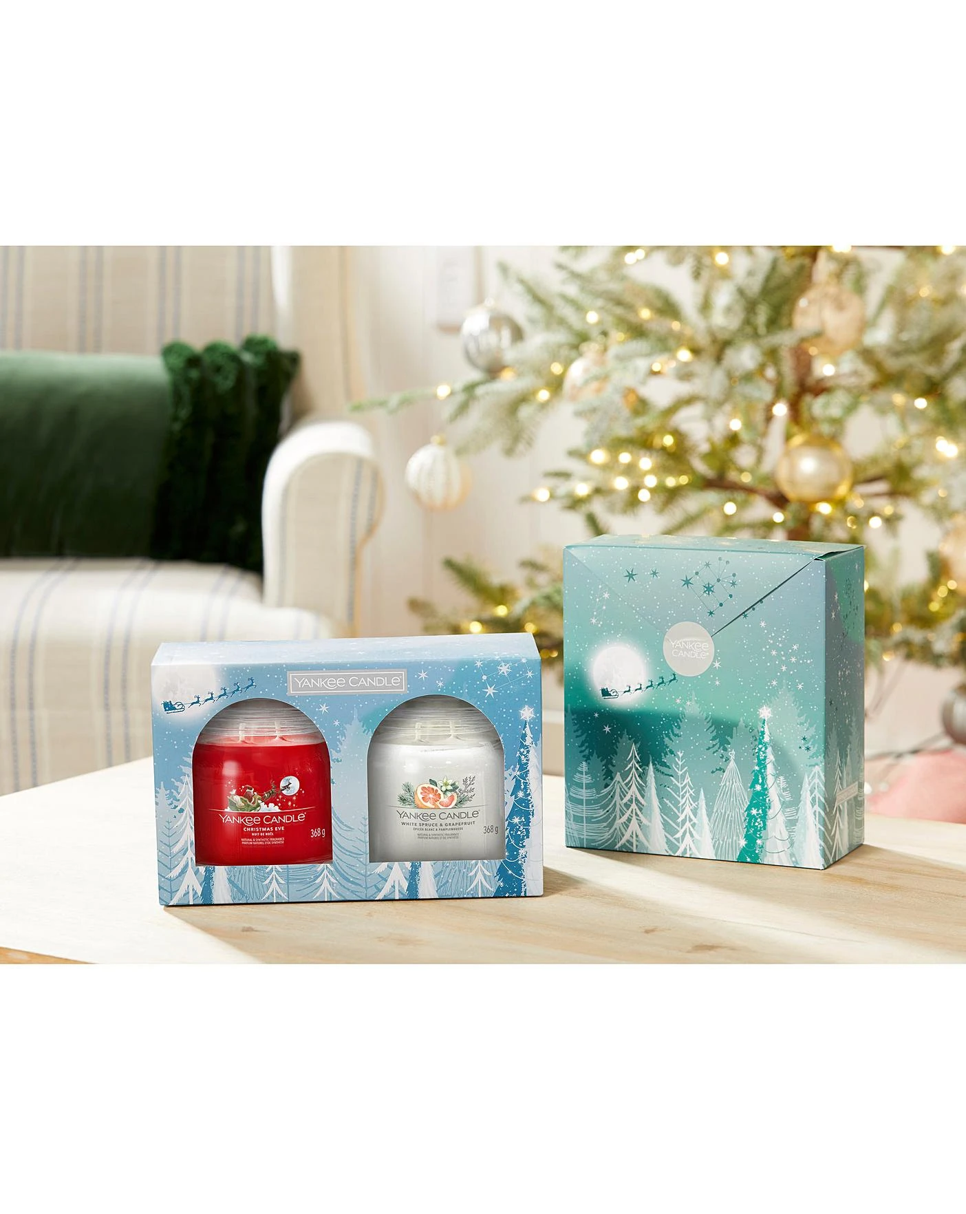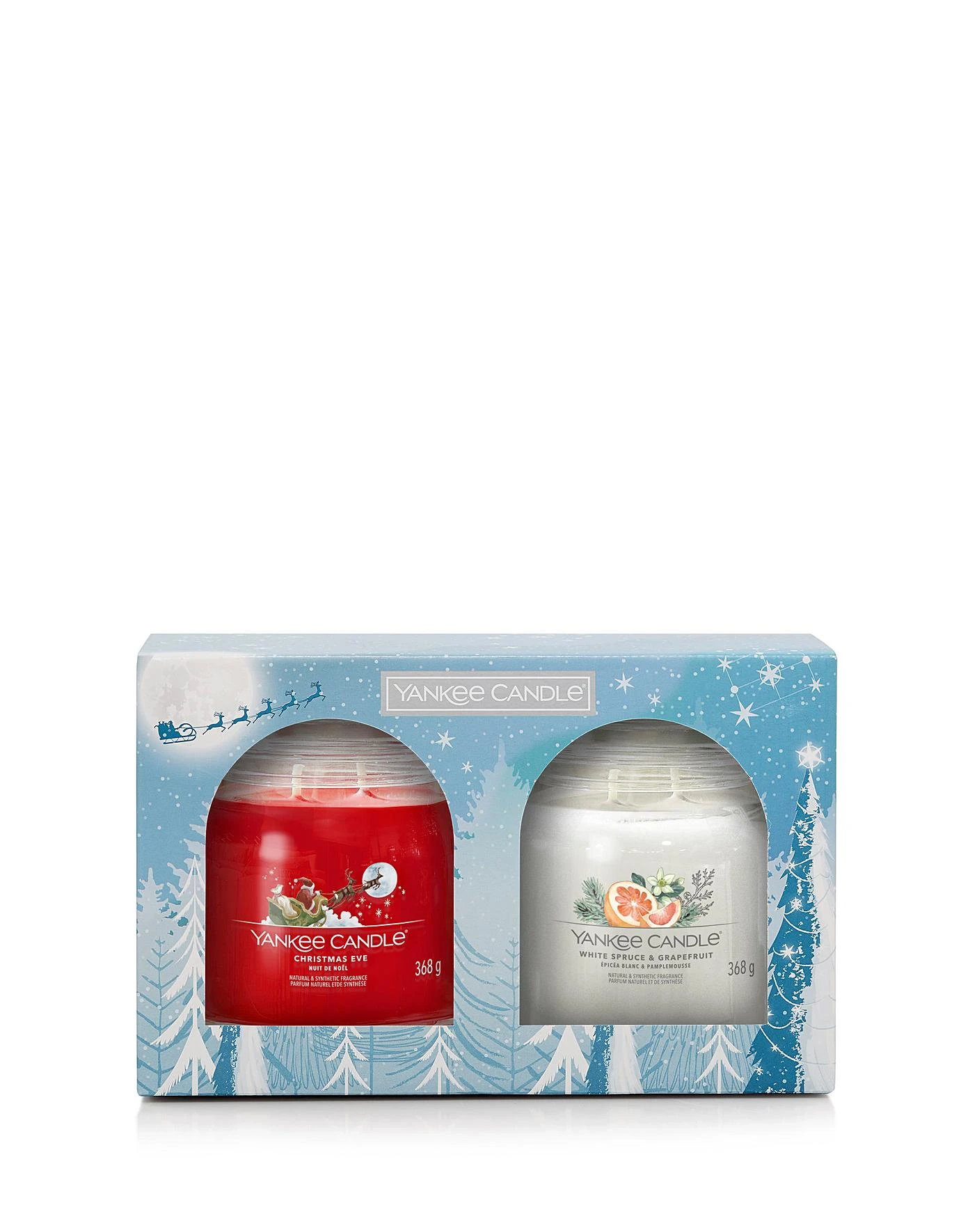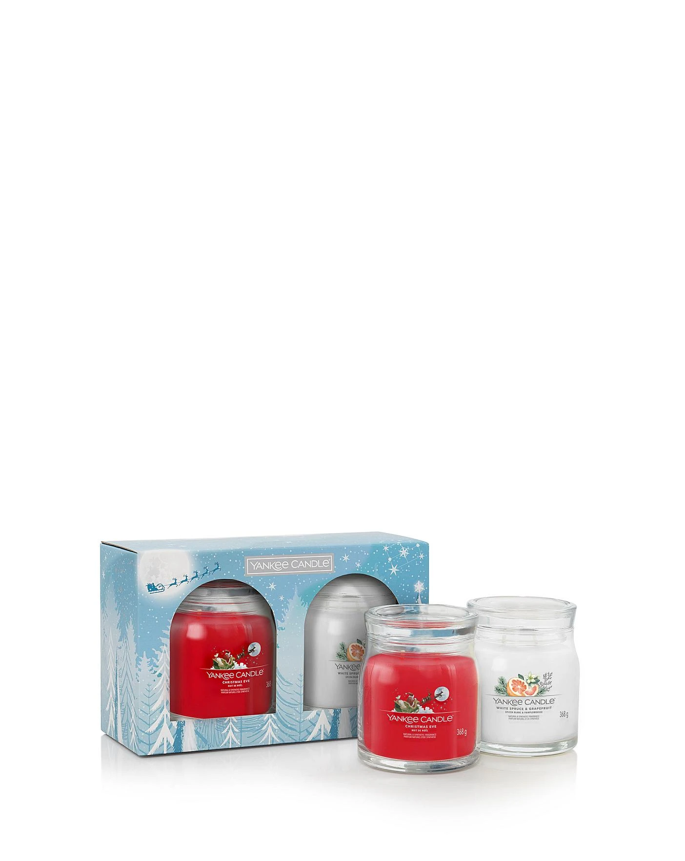 Yankee Candle 2 Medium Signature Jar Giftset includes x1 of each scent. Scents Include: Christmas Eve and White Spruce & Grapefruit.